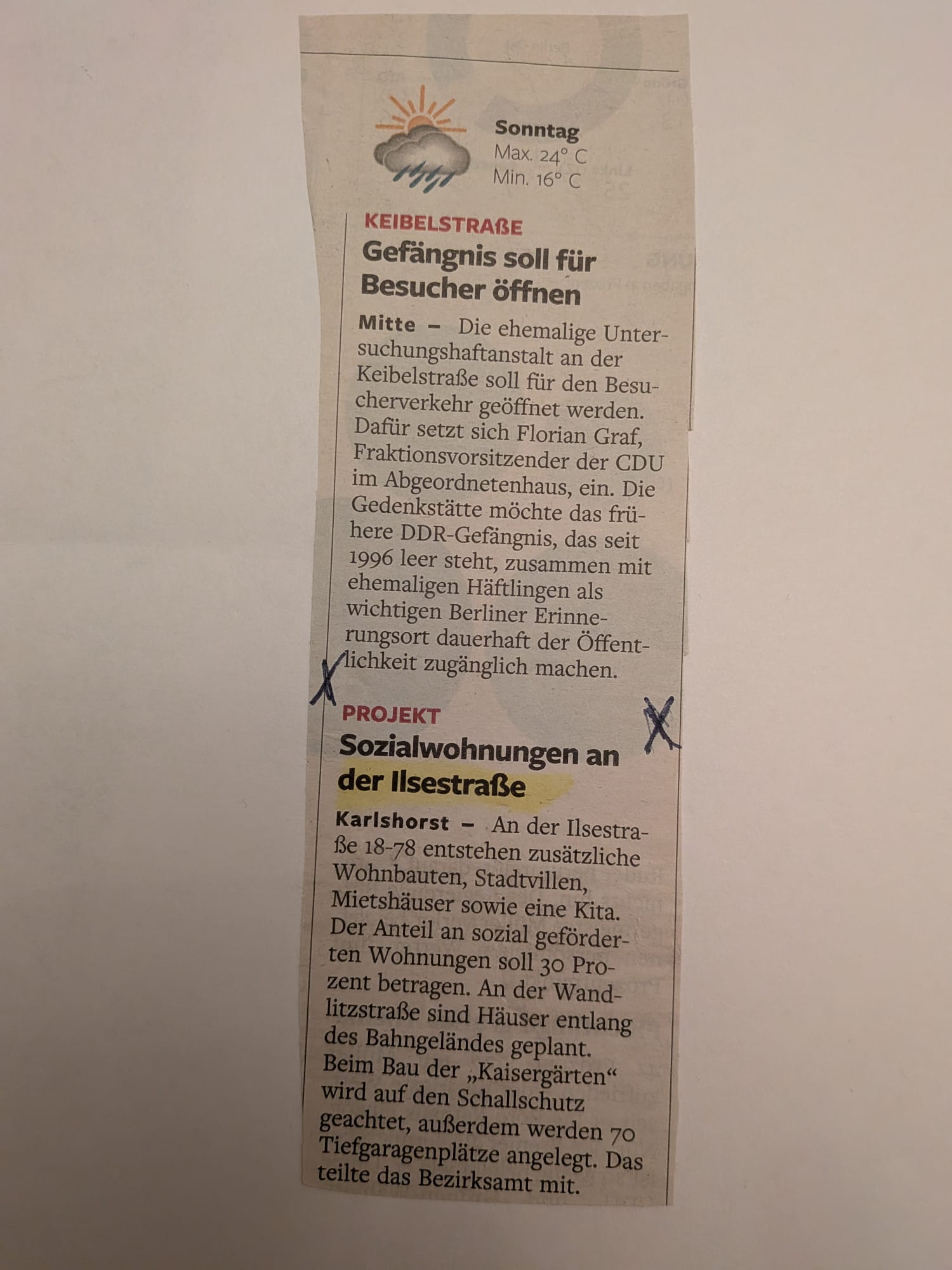 Zeitungshinweis in Werbeblatt